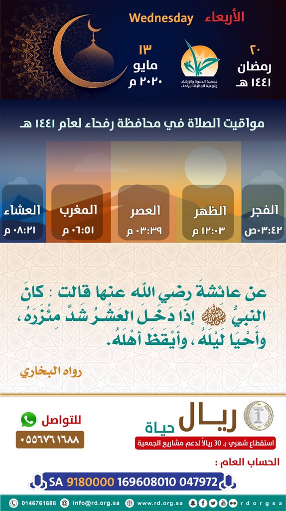 Uzivatel جمعية الدعوة برفحاء Na Twitteru إشراقة حياة مواقيت الصلاة في محافظة رفحاء 20 رمضان رفحاء عرعر رمضان رمضان كريم