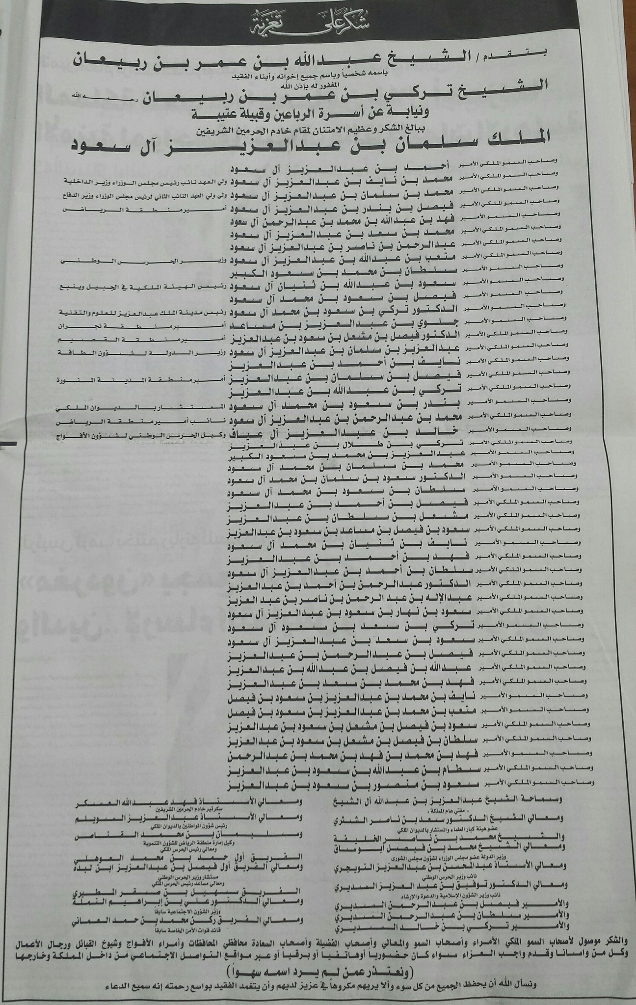 ابن ربيعان ابو عتيبه V Twitter الشيخ عبدالله بن عمر بن عبدالرحمن بن ربيعان شيخ مشايخ قبائل عتيبة يشكر المعزين في وفاة أخيه الشيخ تركي بن عمر بن ربيعان نيابة عن قبيلة