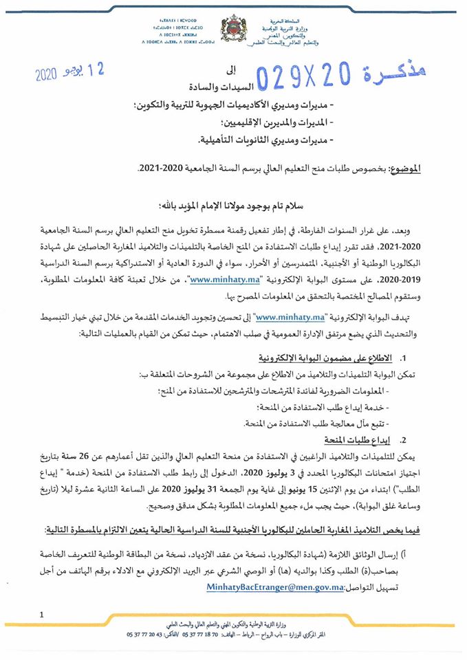 Www Minhaty Ma إيداع طلبات الاستفادة من منح التعليم العالي 2020 2021