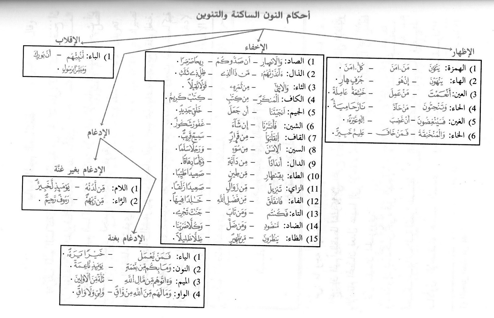 مخطط احكام النون الساكن والتنوين مع الشرح المبسط منتديات أهل الأنبار